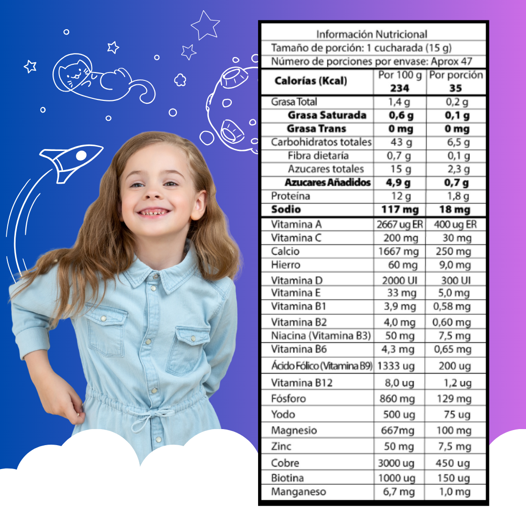 Alimento en polvo a base de Maltodextrina adicionado con vitaminas, minerales y proteínas.