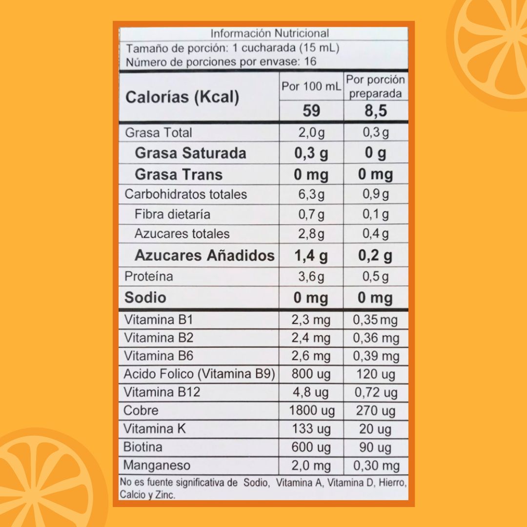 Mezcle 1 cucharada (15 ml) en taza o vaso (200-250 ml) con agua fría, agua caliente o jugo y disolver hasta obtener un producto homogéneo.