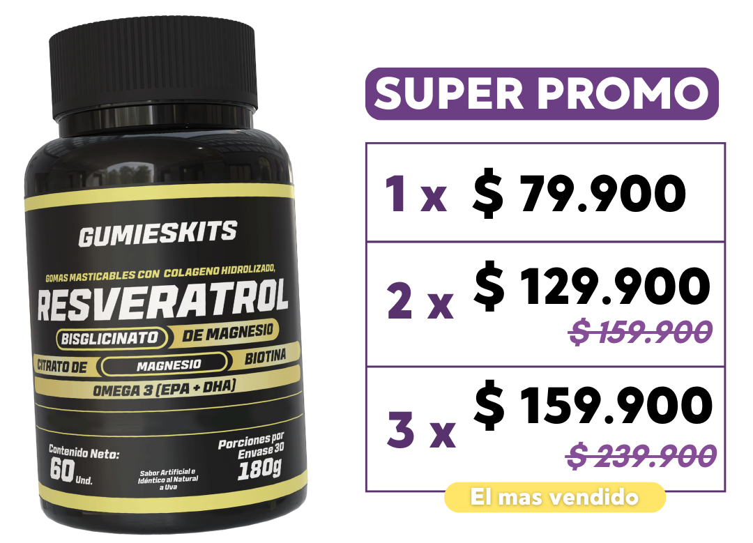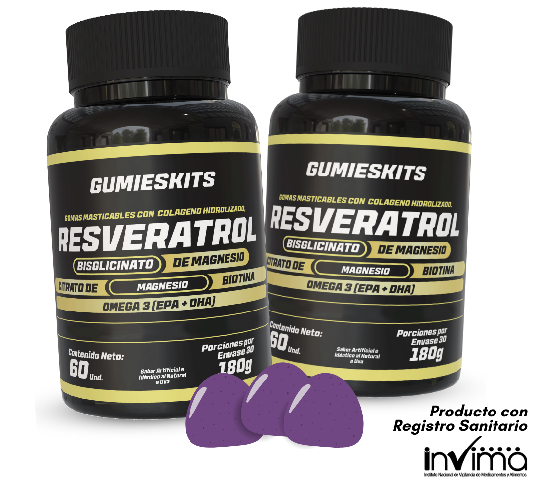 - 2 Gomitas de Resveratrol ¡Una dosis completa para tu piel y salud!
