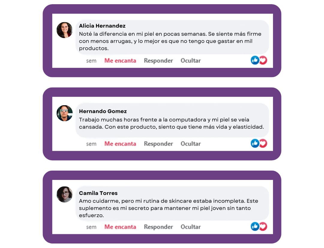 - Resultados visibles rápidamente: piel más firme, hidratada y rejuvenecida desde adentro.
