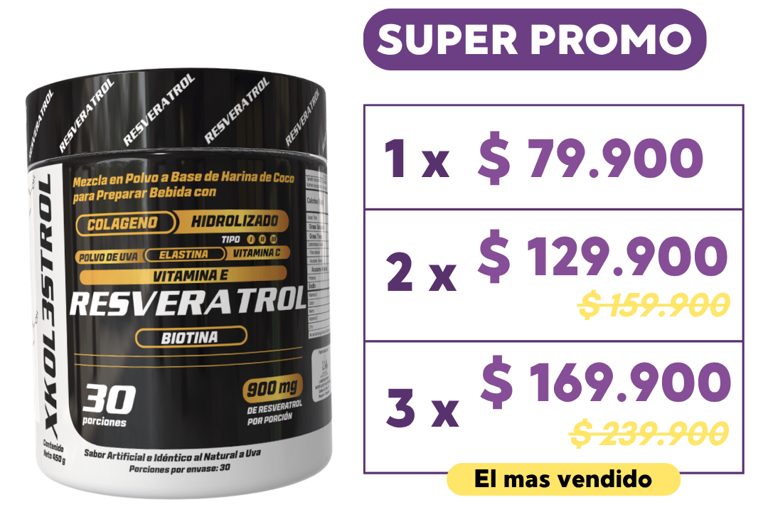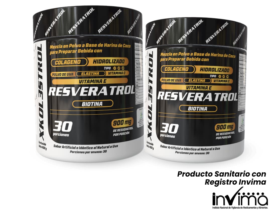 - Resveratrol + Colágeno Hidrolizado + Omega 3 + Biotina + Elastina