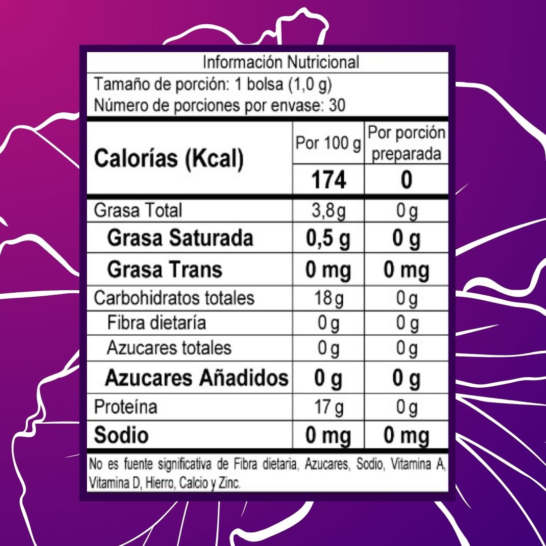 El producto y las descripciones contenidas en este documento son derivadas de alimentos, cosméticos, suplementos dietarios y nutricionales. La información presentada es de carácter ilustrativo y por lo tanto NO reemplazan las recomendaciones médicas ni el tratamiento que un profesional de la salud le haya previsto.